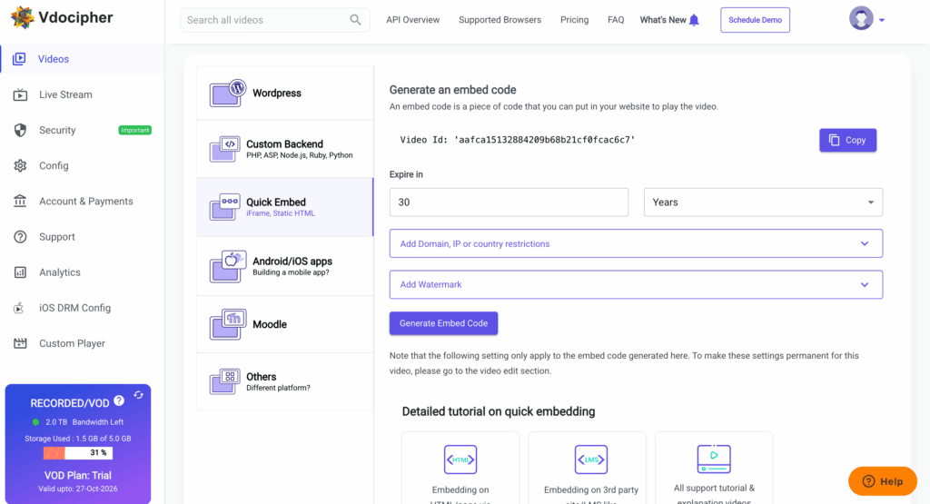Method 1: Embed Secure Videos with VdoCipher (Recommended for Premium Content)