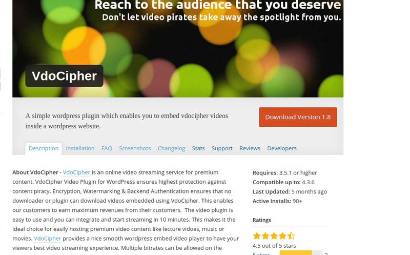 Step 3: Install VdoCipher plugin to your Website. Embed video using VdoCipher plugin