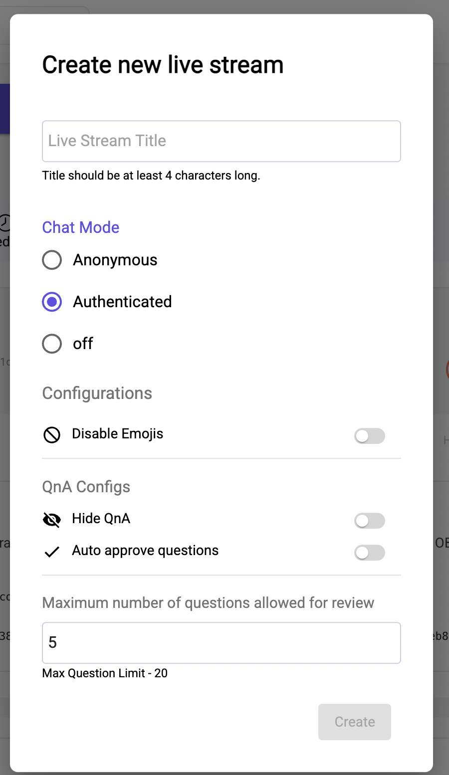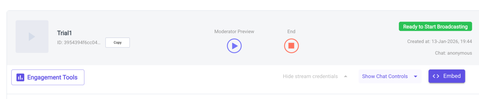 Once your authenticated live stream is created from the dashboard, click the “Engagement Tools” button. This redirects you to the QnA moderation panel. Here, hosts can:
