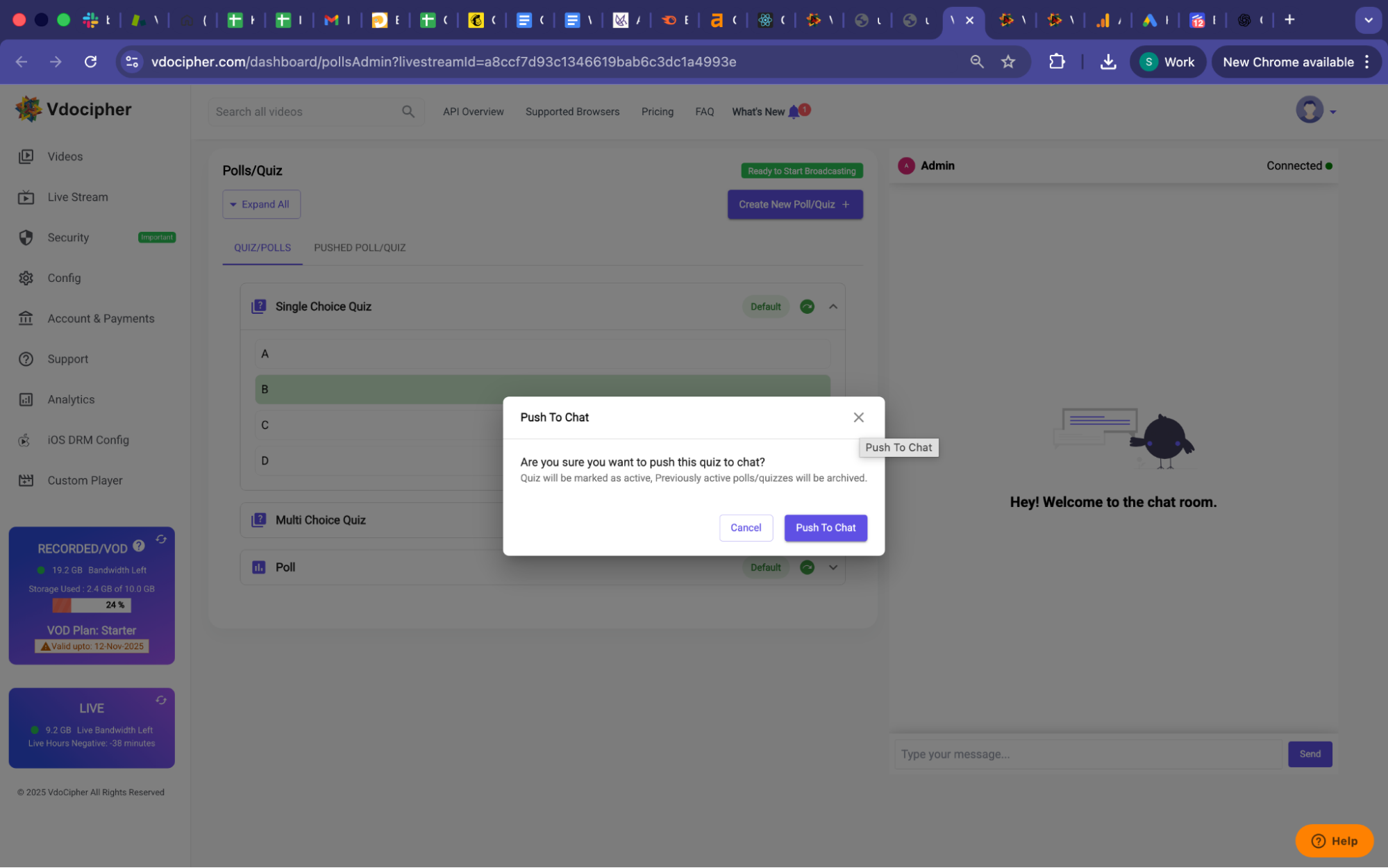 Step 3: Simply click on the green round arrow icon (Push to Chat) to send a selected poll or quiz directly to the live chat. Viewers will see it in real time and can respond instantly, making your sessions truly interactive and engaging.