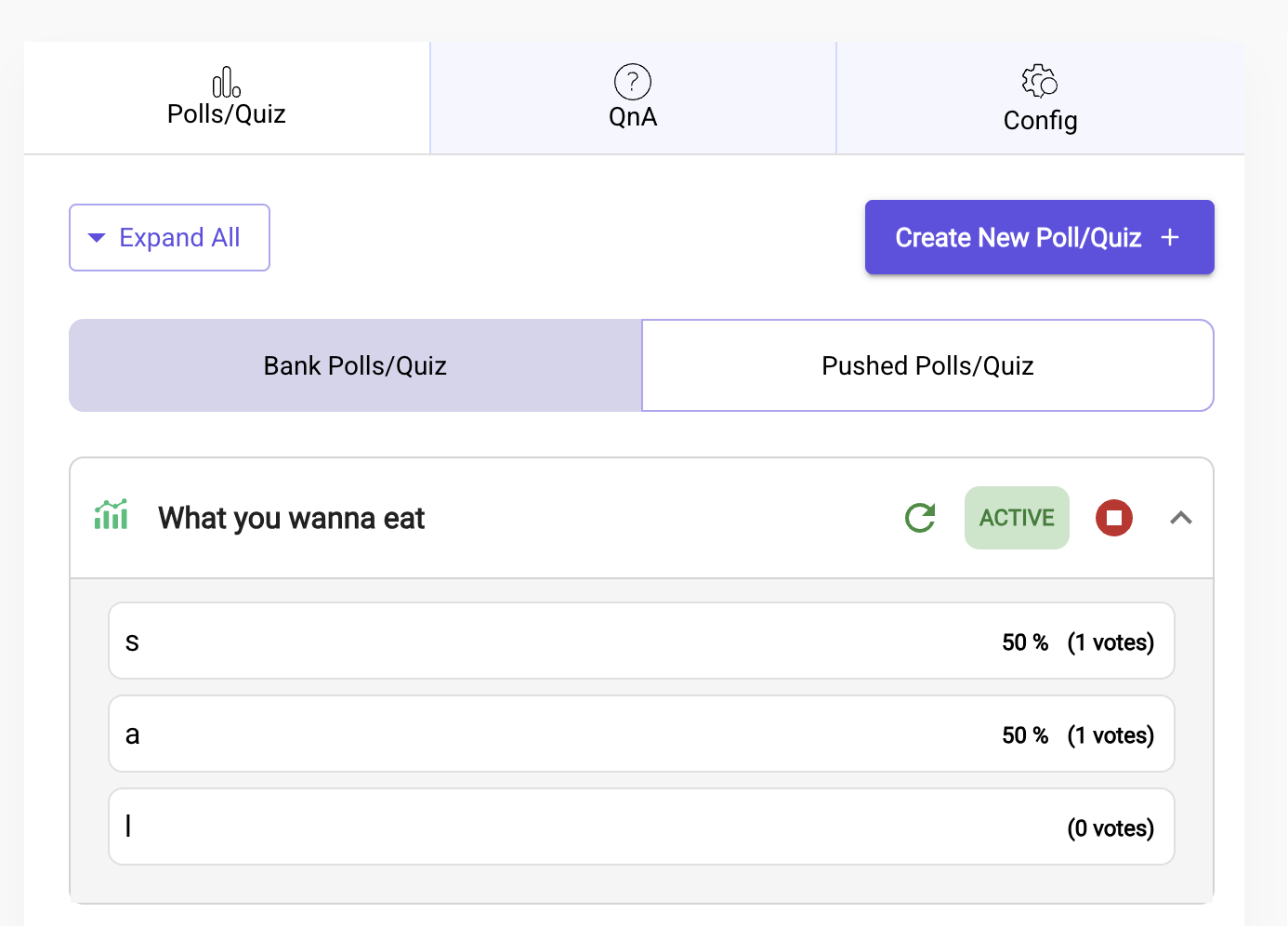 Each time you push a new quiz or poll, it becomes an active interaction, while previously shared polls or quizzes are archived automatically. This ensures a smooth experience for both the host and the audience, without clutter or confusion.