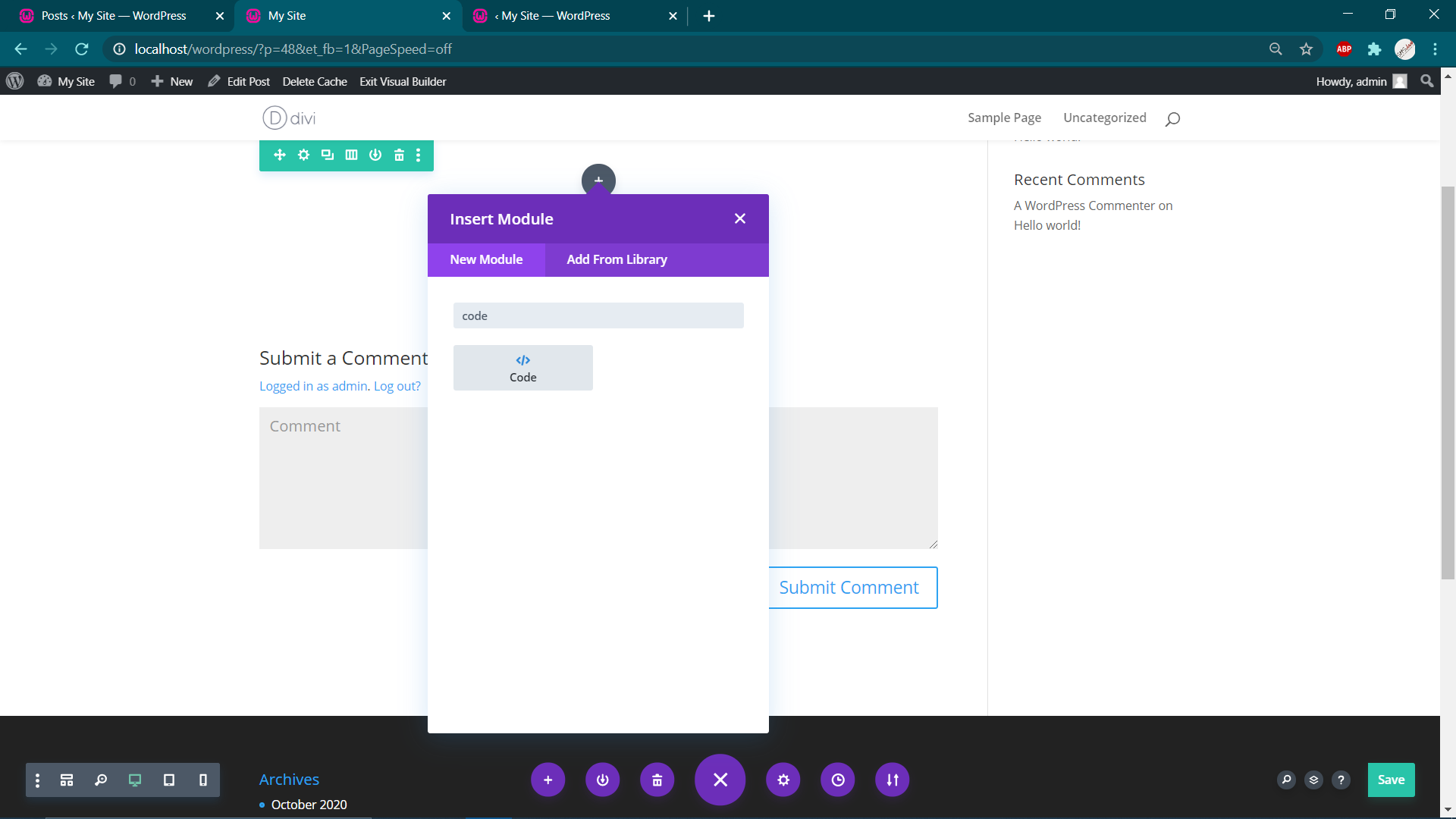 Similarly like Elementor, you can embed video with Divi in 2 ways. Firstly, by making use of the Code module and Secondly, by using the Text module, both options available in the Insert Module popup. We will run through both the modules to make sure you aren’t stuck anywhere.